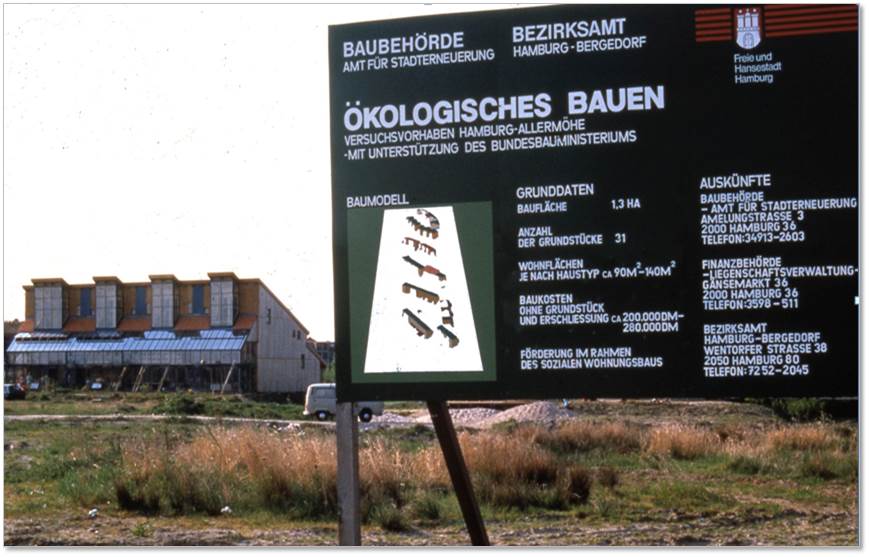 Spätestens 1983 war die Stadt Hamburg durch eine Kombination von städtebaulichem, Architekten- und Bauträgerwettbewerb für die geplante Teilfläche "Ökologisches Bauen" des Neubaugebietes Neu-Allermöhe-Ost in intensive Planungsarbeit eingetreten.